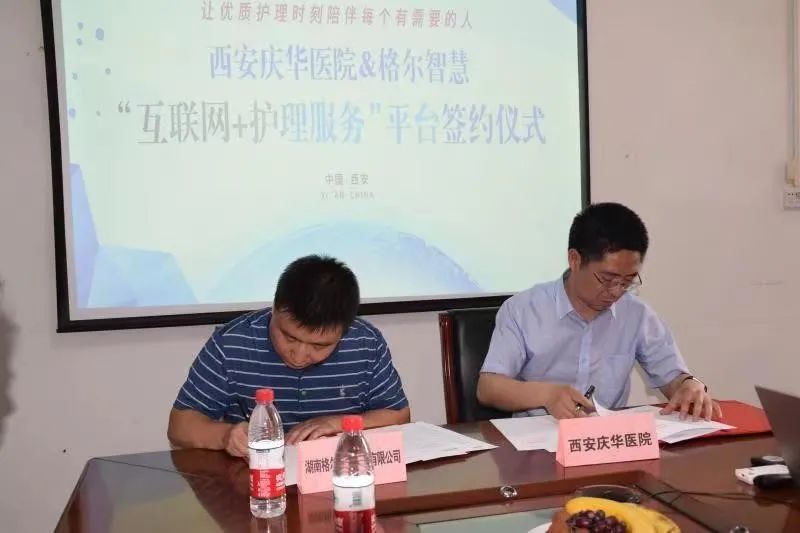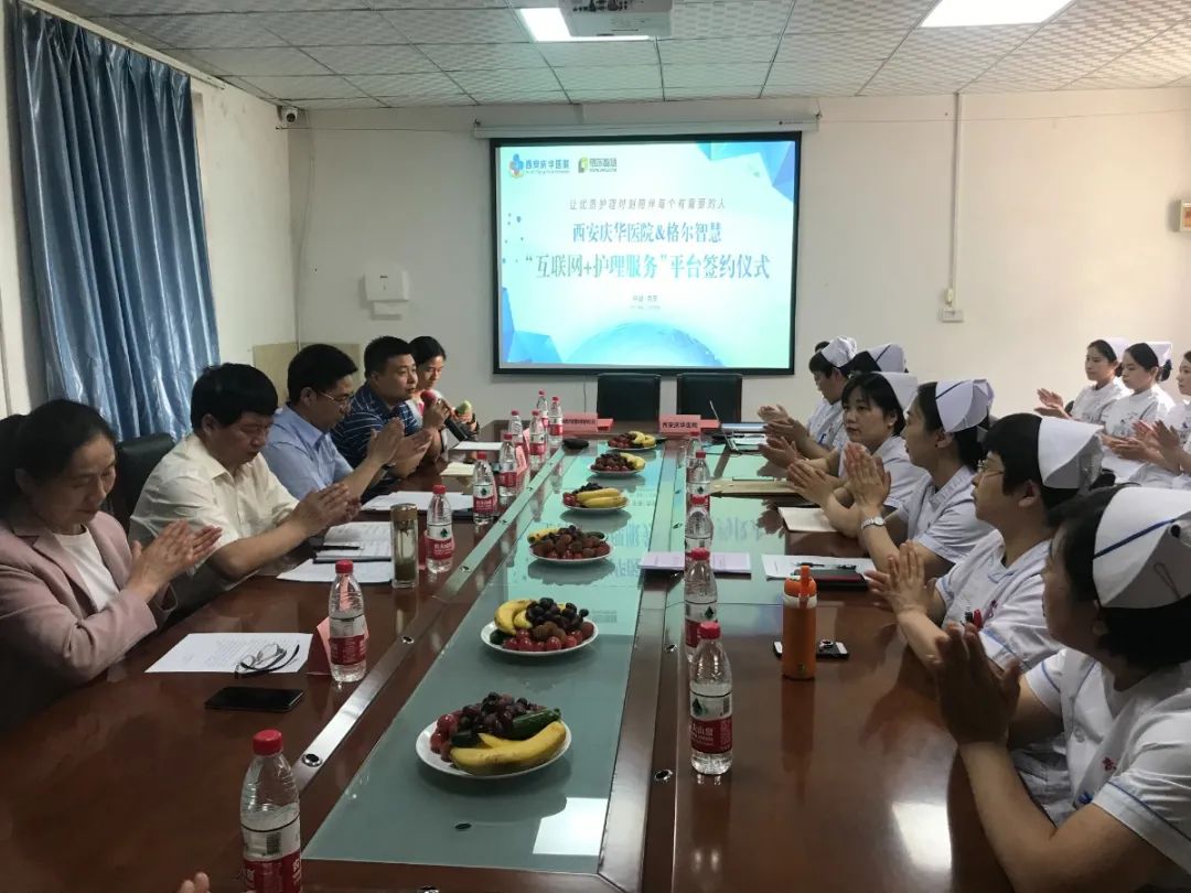 在第110个国际护士节来临之际,为落实国家“互联网+护理服务”政策落地、践行中华护理学会“创新发展护理”理念,2021年5月11日,西安庆华医院与格尔智慧战略合作“互联网+护理服务”平台合作在庆华医院一号会议室正式签约。 医院业务副院长程钢、纪委书记刘建书、护理部主任白亚玲、格尔智慧公司董事长李群、格尔智慧西安事业部总监张春容以及院方相关职能部门负责人以及部分护理人员参加签约仪式。签约仪式由格尔智慧西安事业部总监张春容主持。