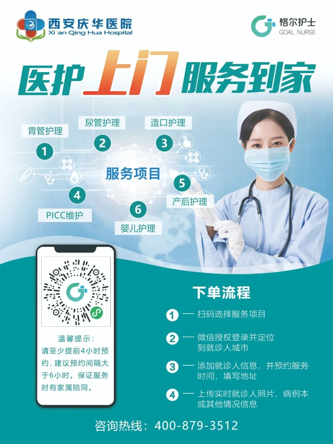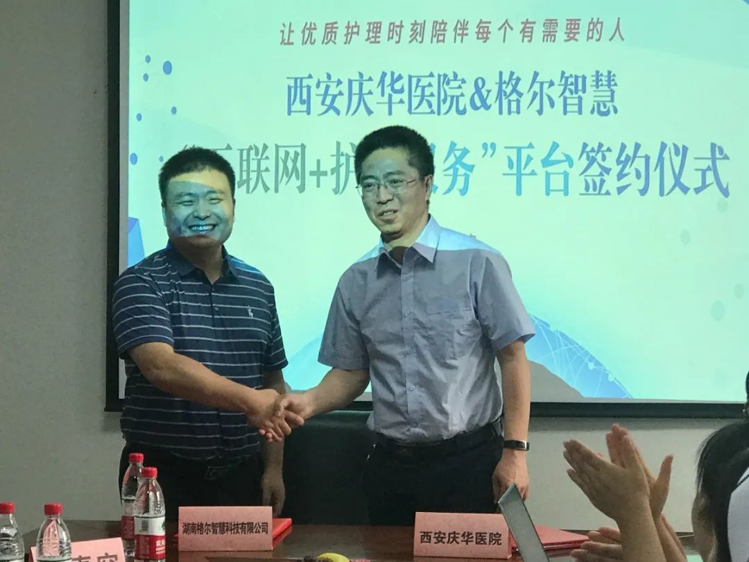 西安庆华医院与格尔智慧的“互联网+护理服务”合作,将通过互联网的紧密联系,将护理工作模式由医院向家庭延伸,让老百姓真正享受到现代化的优质护理服务。在后期,医院以互联网技术作保障,将优质的医护团队和精湛的专业护理技术送到百姓家中,开启西安庆华医院智慧护理服务的新时代。